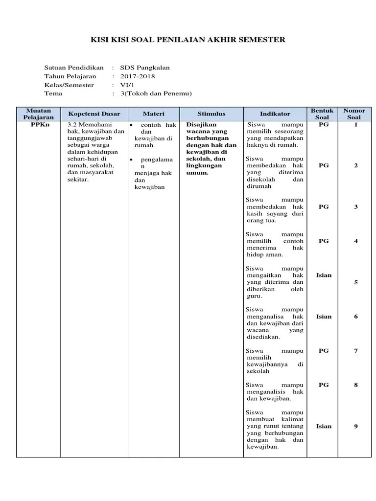 Soal Uas Pai Kls 1 Semester 1 : Soal Uas Pjok Kelas 3 Sd Sem 1 / Berilah tanda silang (x) pada huruf a, b atau c pada jawaban yang